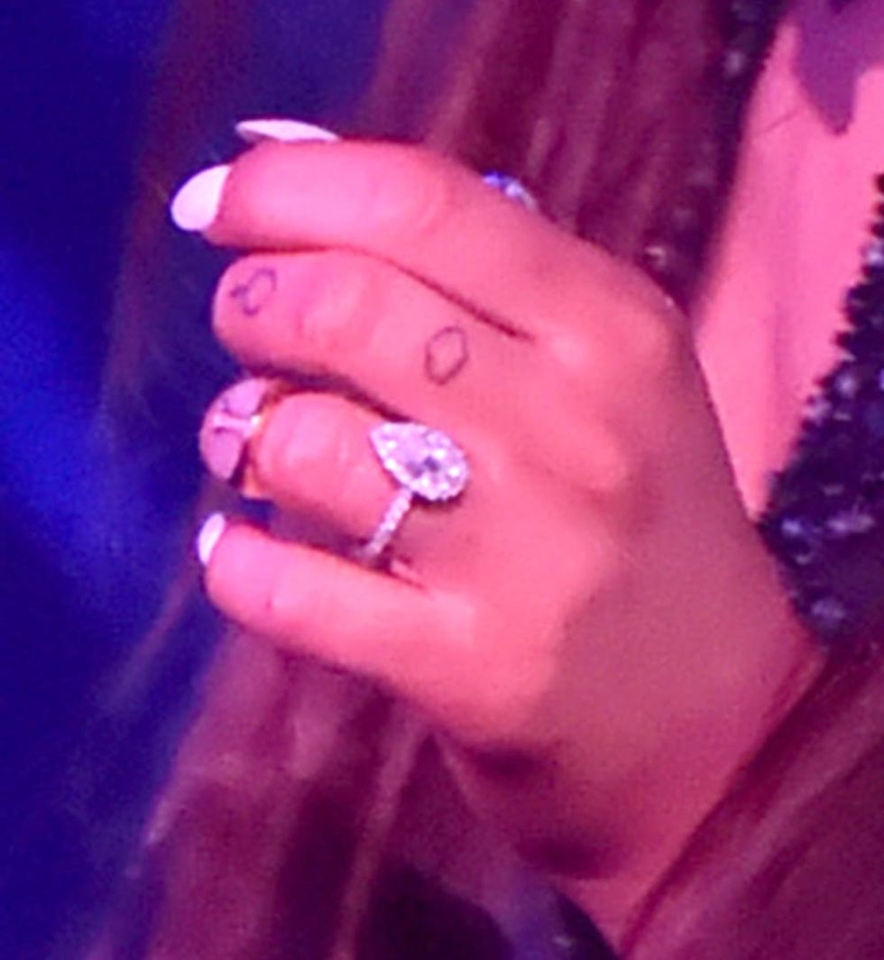 Fans unknowingly got their first glimpse of the pear-shaped bauble surrounded by smaller halo diamonds, which Yuna says took two weeks to make, on June 2, when Grande performed at the iHeart Radio and 102.7 KIISFM Wango Tango concert in LA.