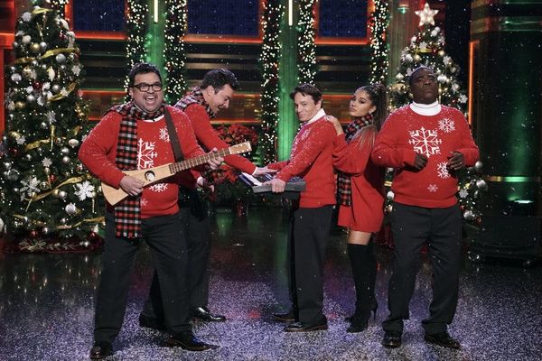 Ariana Grande has been a frequent and favorite guest on both Saturday Night Live and Jimmy Fallon’s Tonight Show over the years, and on the Tuesday, December 17, episode of the latter, she joined the host and other SNL alums to perfectly recreate a classic Christmas sketch.