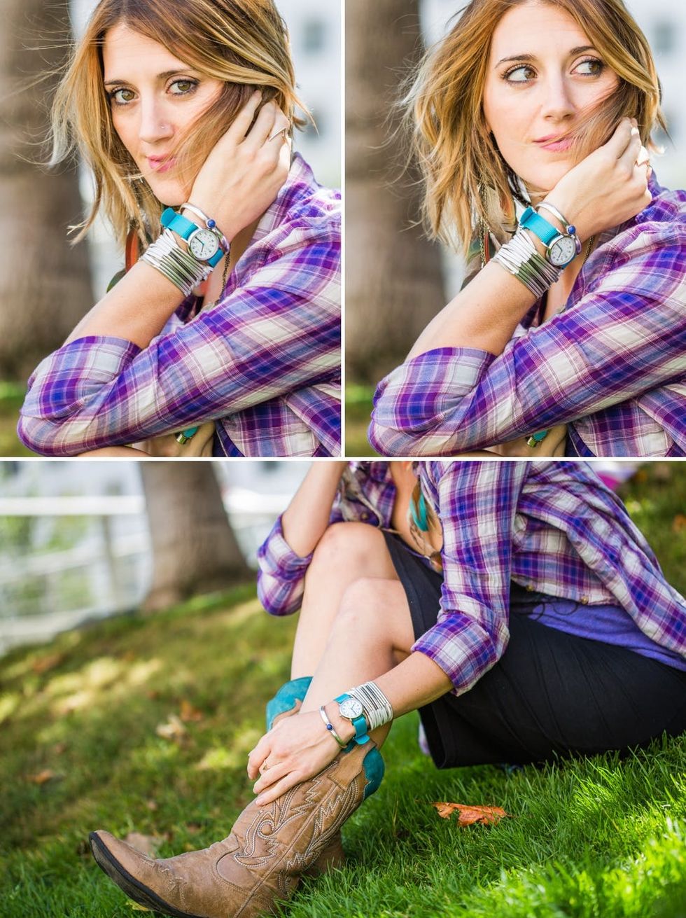 This boho babe isn’t afraid to mix every texture and color under the sun. Friendship bracelet? Check. Beaded bangle? Check. Stylish timepiece? You got it.