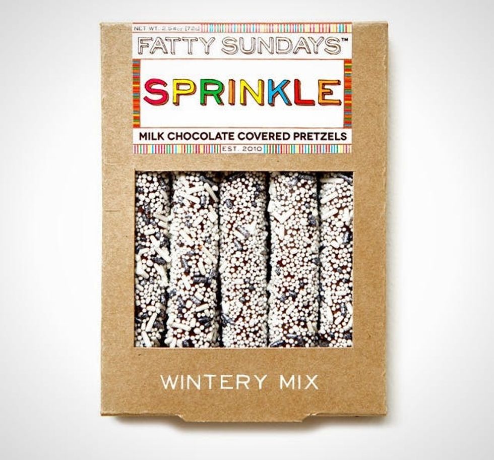 16. Fatty Sundays January Wintery Mix Pretzels ($8): Another hot ticket item from Brit + Co SF, these chocolate-covered pretzel rods are topped with white, pearl, and silver nonpareils. Yum.