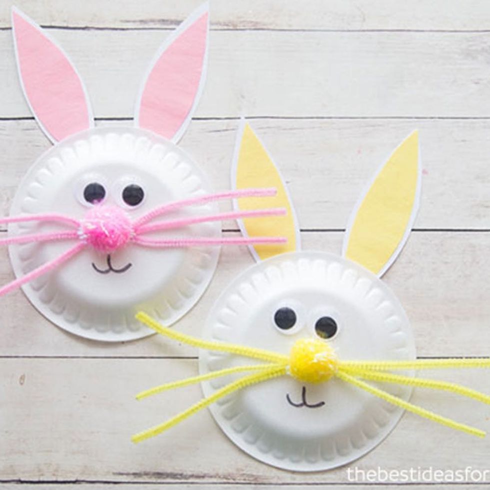 Made with paper plates, this bunny basket is easy as pie. Grab your pom-poms and get gluing!