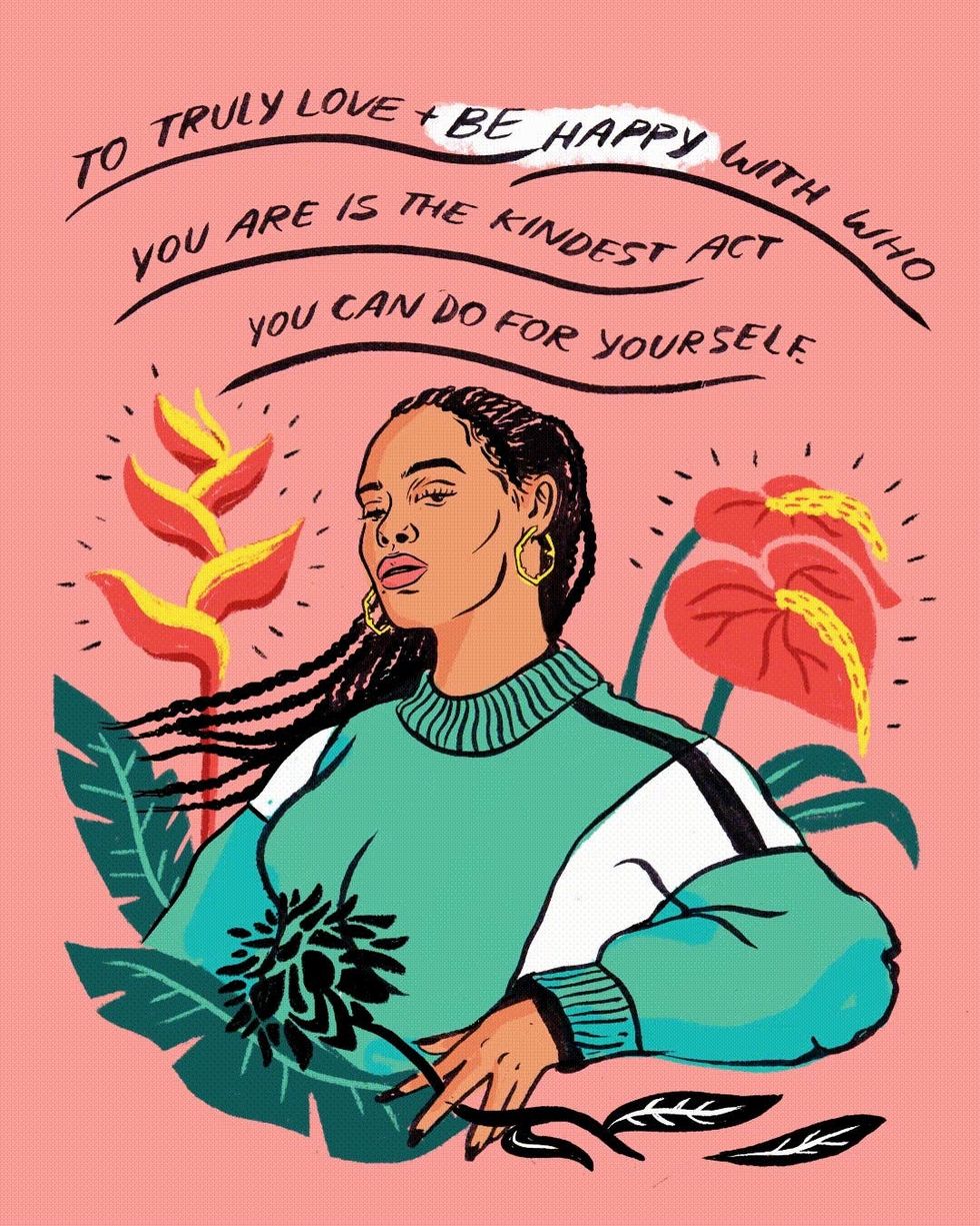 AL: Wow, there are so so many. I look to my fellow illustrators on Instagram for a lot of inspiration, as well as the incredible political artists whose passion inspires me to do better. I love that I can follow my favorite artists and see work as they create it. Some of my favorite illustrators are Lisa Congdon, Subin Yang, Bijou Karman, Kristen Liu Wong, Kati Szilagyi, Sophia Zarders, Celia Jacobs, Loveis Wise. There are too many to name! In terms of fine art/political work, I love Nina Chanel Abney, Kehinde Wiley, Favianna Rodriguez, Monica Kim Garza, and Toyin Ojih Odutola, to name a few.
