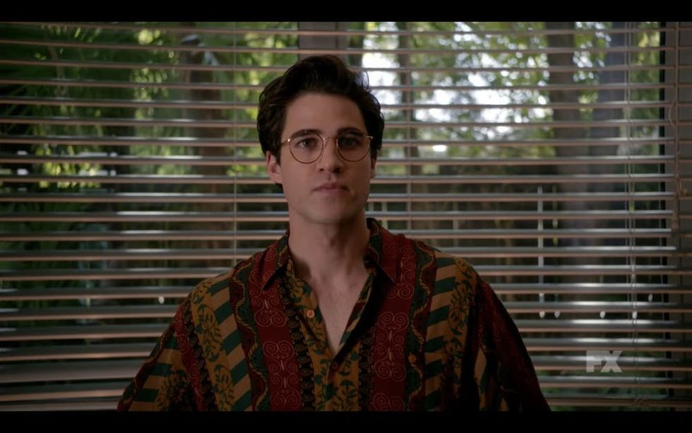 “This particular manhunt is the largest failed FBI manhunt in history,” actor Darren Criss tells us in the video. The failed manhunt centers around Criss’ character, Andrew Cunanan, a hustler and grifter who landed in Miami after a killing spree that saw at least four closeted gay men dead throughout the Midwest. Cunanan’s crimes were tangled with his fear of being outed and his use of his sexuality to control his victims by telling them he would out them to their families if they didn’t go along with him.