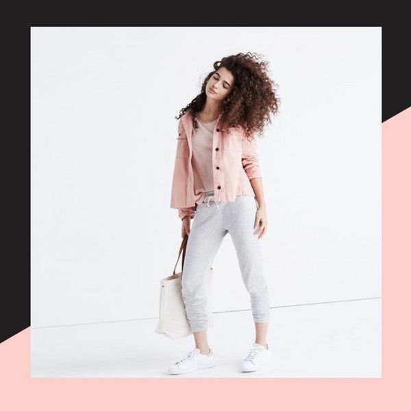 Neighborhood coffee strolls and visits to the local farmers’ market call for a solid pair of sweats that can kick it with colorful denim jackets and metallic sneakers — and these are it.