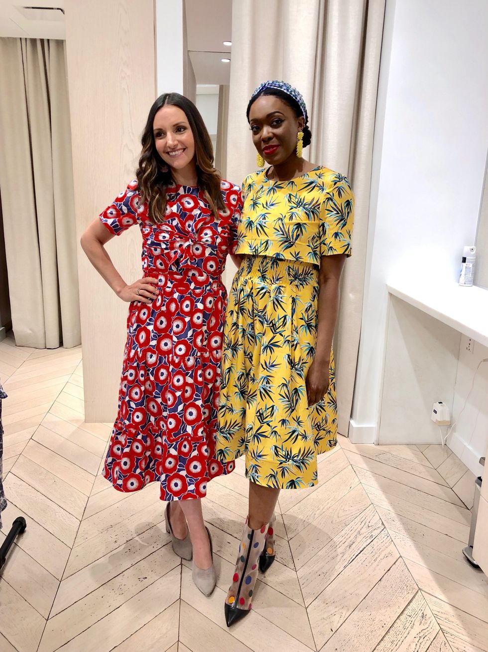 Autumn came into the Brit + Co family through a totally serendipitous series of events. Brit had just kicked off her #GiveItAWeek challenge (an insane endeavor involving our ambitious founder taking on 52 New Year's resolutions instead of just one), and was embarking on a week of power clashing, pattern mixing, and getting out of her style comfort zone. I lent her all sorts of patterned clothes, and she started sharing her outfits on Instagram and mentioned an upcoming trip to NY to appear on The Today Show. A designer reached out to her and offered to bring her a bunch of patterntastic outfit options to wear on the show — Brit immediately fell for Autumn and her gorgeous collection, and voila, a deep creative connection was made.