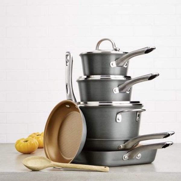 Home chefs will love this high-quality set of durable hard anodized aluminum pots and pans, which heat up quickly and evenly for even the most complicated recipes.