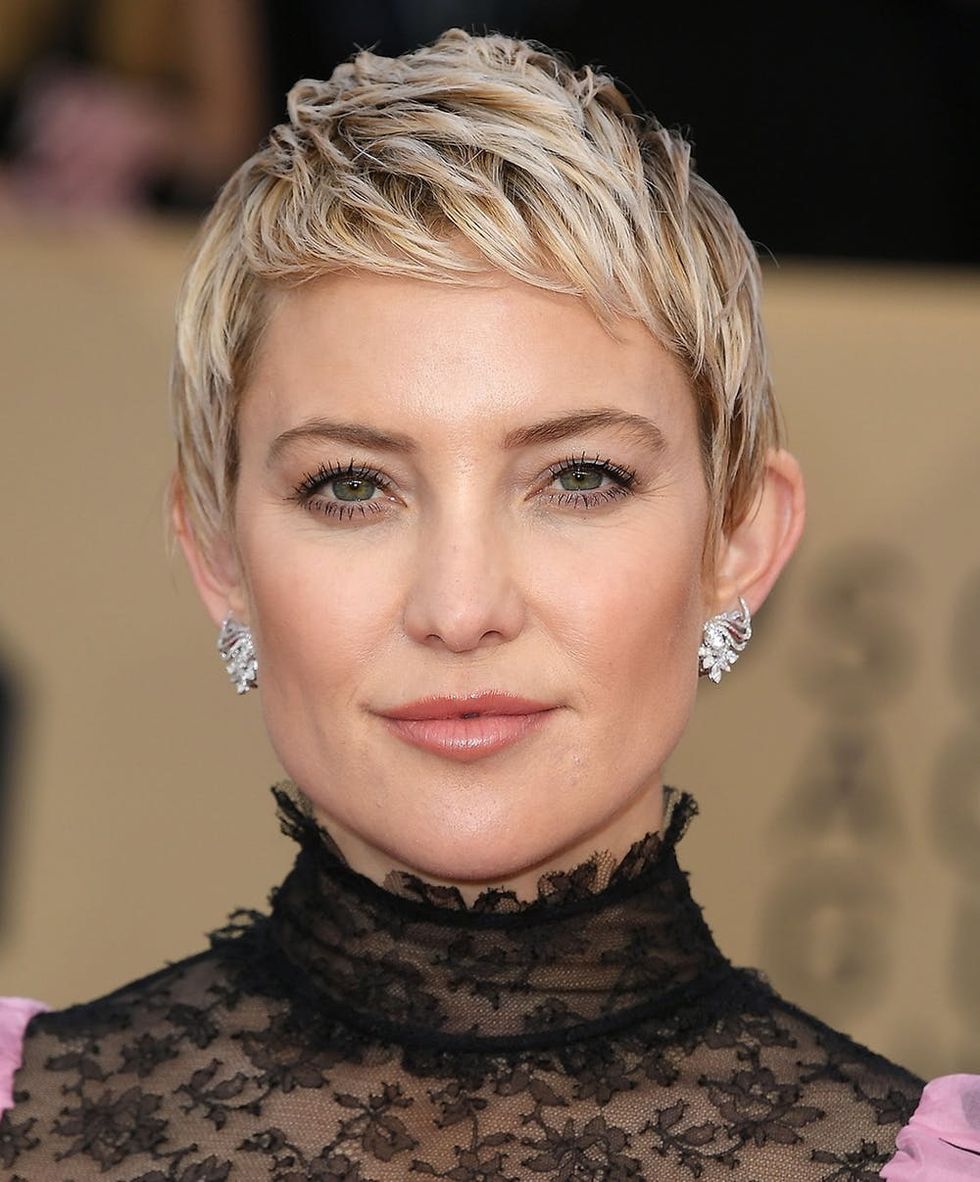 7. Kate Hudson: Have a piecey pixie like Hudson? Short, texturized bangs will frame your face and add style to your close-cropped strands. (Photo via Steve Granitz/Getty)