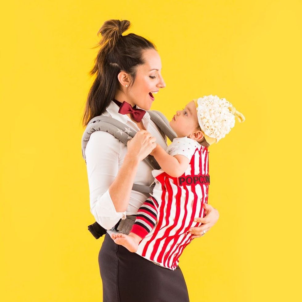 18. Bucket of Popcorn: For the popcorn, grab your baby carrier and a handful of safety pins (or double-stick tape). That’s right — this is a totally temporary piece. (via Brit + Co)