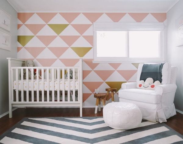 7. Tricked Out Triangles: Make a statement with a bold patterned wall, and keep the rest of the nursery soft and soothing. (via Green Wedding Shoes)