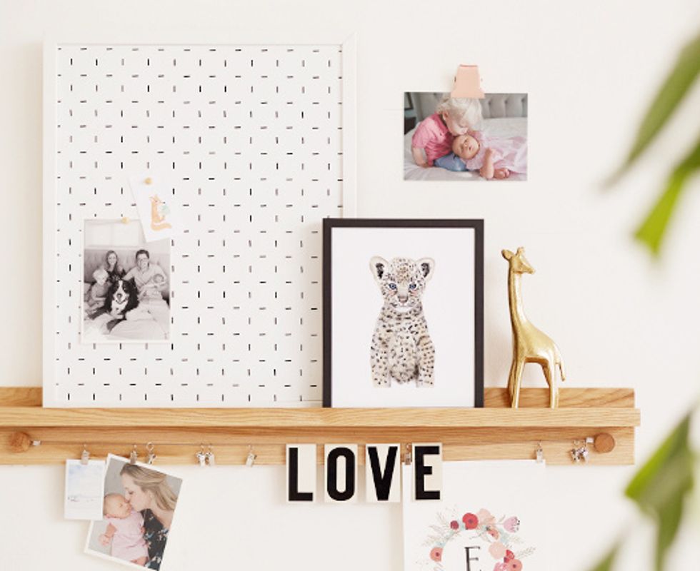 18. Nursery Shelf: Some moms may tell you to throw out all organization goals after baby's arrival. But we think it's okay to have high aspirations. Get off to a great start and show all your friends you're clearly super-mom with this Little Artist Shelf for hanging shower cards and other mementos from the built-in art clips. (via Minted)
