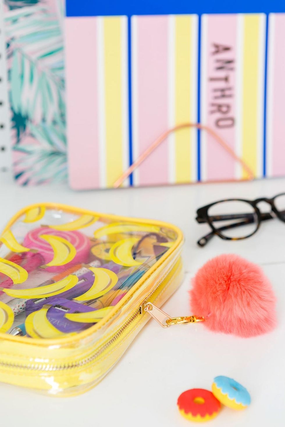 We’re also quite partial to pouches for school accessories. They’re basically mobile drawers, you know? This clear banana pencil pouch (with the fuzziest pom-pom key chain ever) is a winner because we can see the contents inside… and we love banana prints. Duh :)
