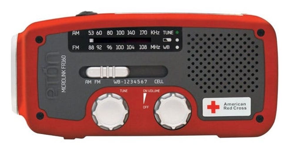 10. Eton Red Cross Self-Powered Radio + Charger ($40): This little device packs a punch. It’s an AM/FM radio, flashlight, and charges any of your devices that connect through USB. If the sun isn’t out, “crank” it up!