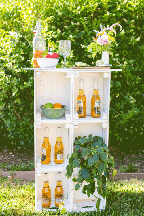 You’ll definitely get to maximize your time in the sun when you can prepare your drinks al fresco. This standing bar is so easy to make and super handy for all of your outdoor party needs.