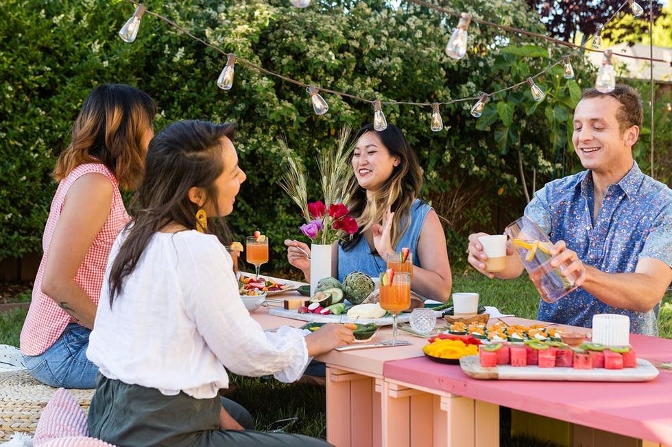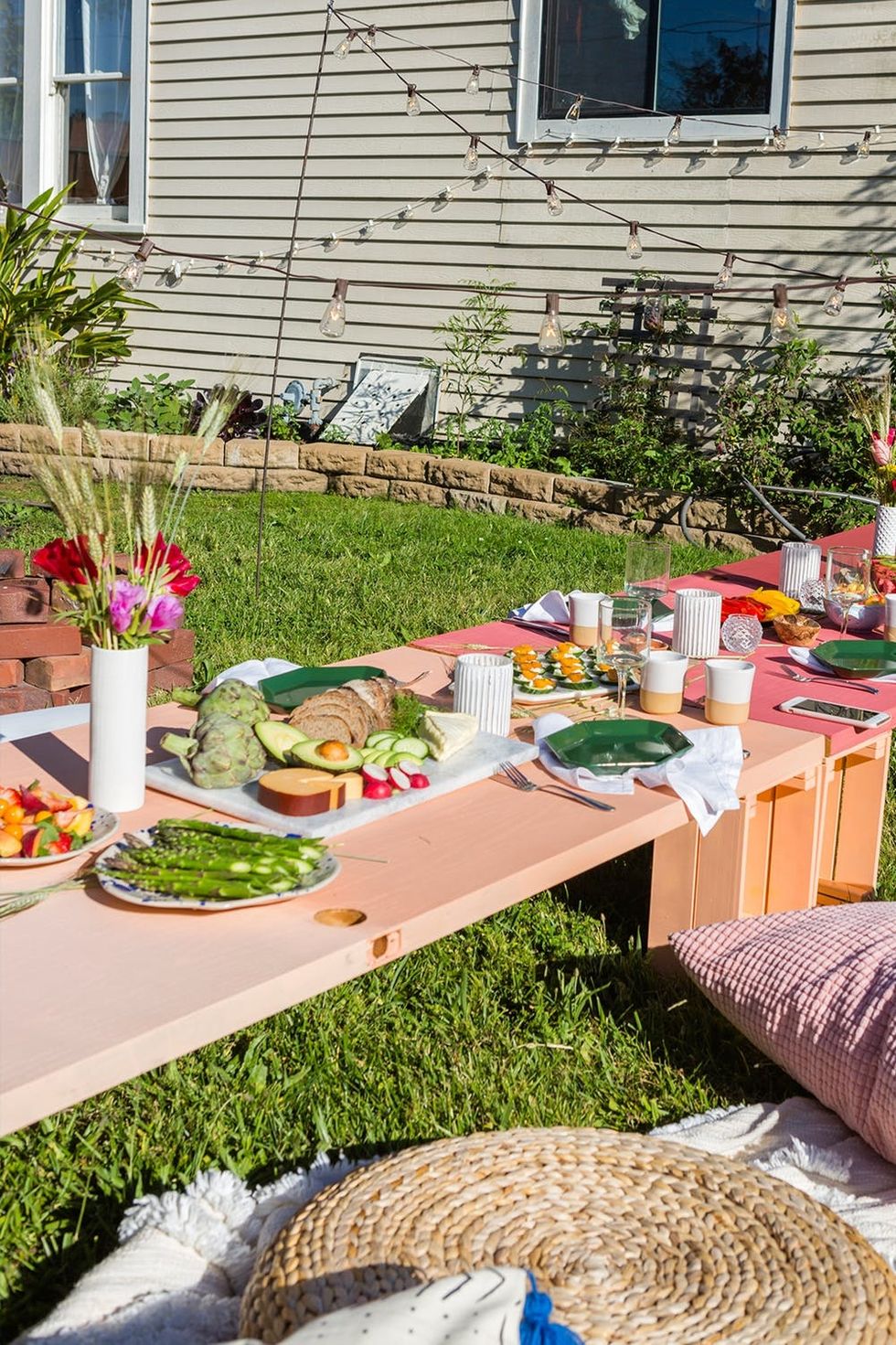 Dining al fresco is much needed in the summertime, but not everyone has the resources for a nice outdoor dining set. That’s why we love this IKEA hack to create a low floor table (who needs chairs, anyway?). It can seat a large group with plenty of space for an epic food spread.