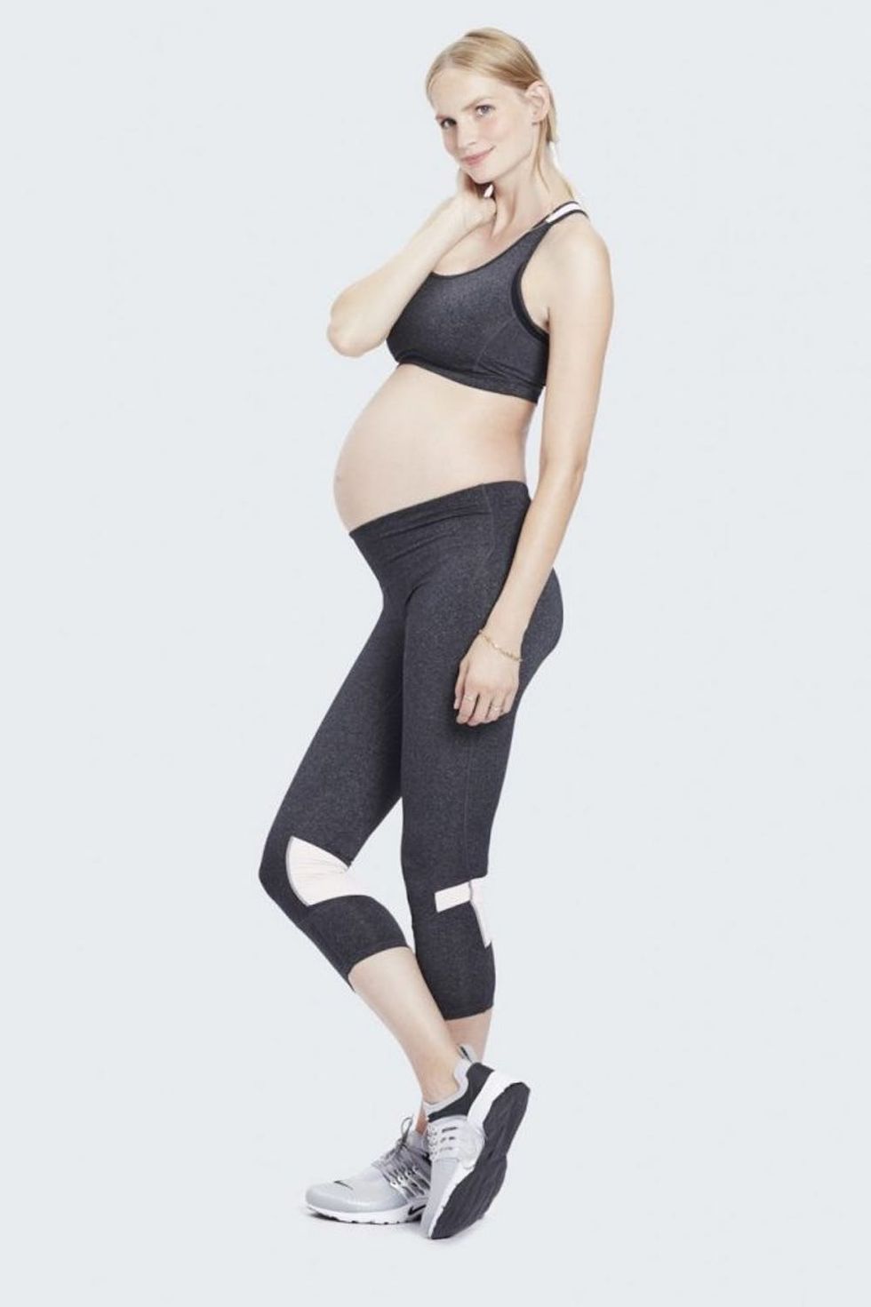 Frustrated by a lack of options for these women, the companies banded together to hatch (see what we did there?) a workout collection specifically for changing body types. Using their combined expertise in stretch fabrics, performance apparel, maternity styling, and design for all stages of pregnancy, the end result is an eight-piece collection that’s cute and comfy. Because isn’t that what all women want, anyway? (Multiply that by 1,000 if you’re pregnant.)