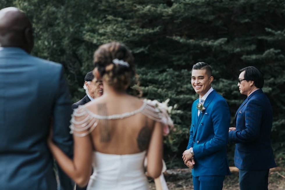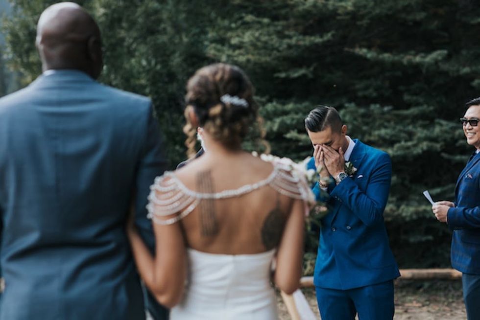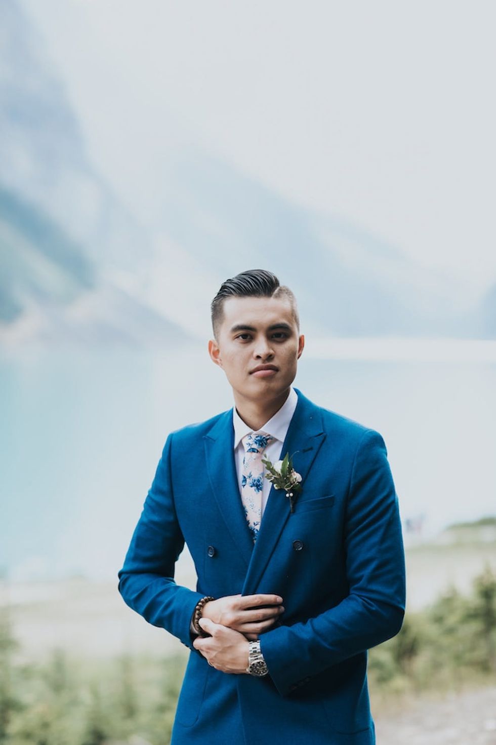 2. Sharp Groom: To play off the vibrant blue water of Lake Louise, Phil chose a sharp blue suit. This shade of blue photographs so well and is bound to be a trend in 2018 weddings!