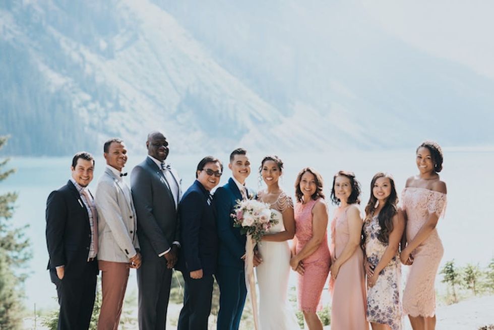 8. Mix-and-Match Wedding Party: Phil and Chelsea went for a fun mismatched wedding party look. Everyone picked their own outfits in a pink and navy color scheme and it allowed for each personality to really shine through. Choosing a mix-and-match wedding party for an elopement is ideal since your wedding party is most likely all of your guests. And you wouldn’t want all your guests in the same attire!