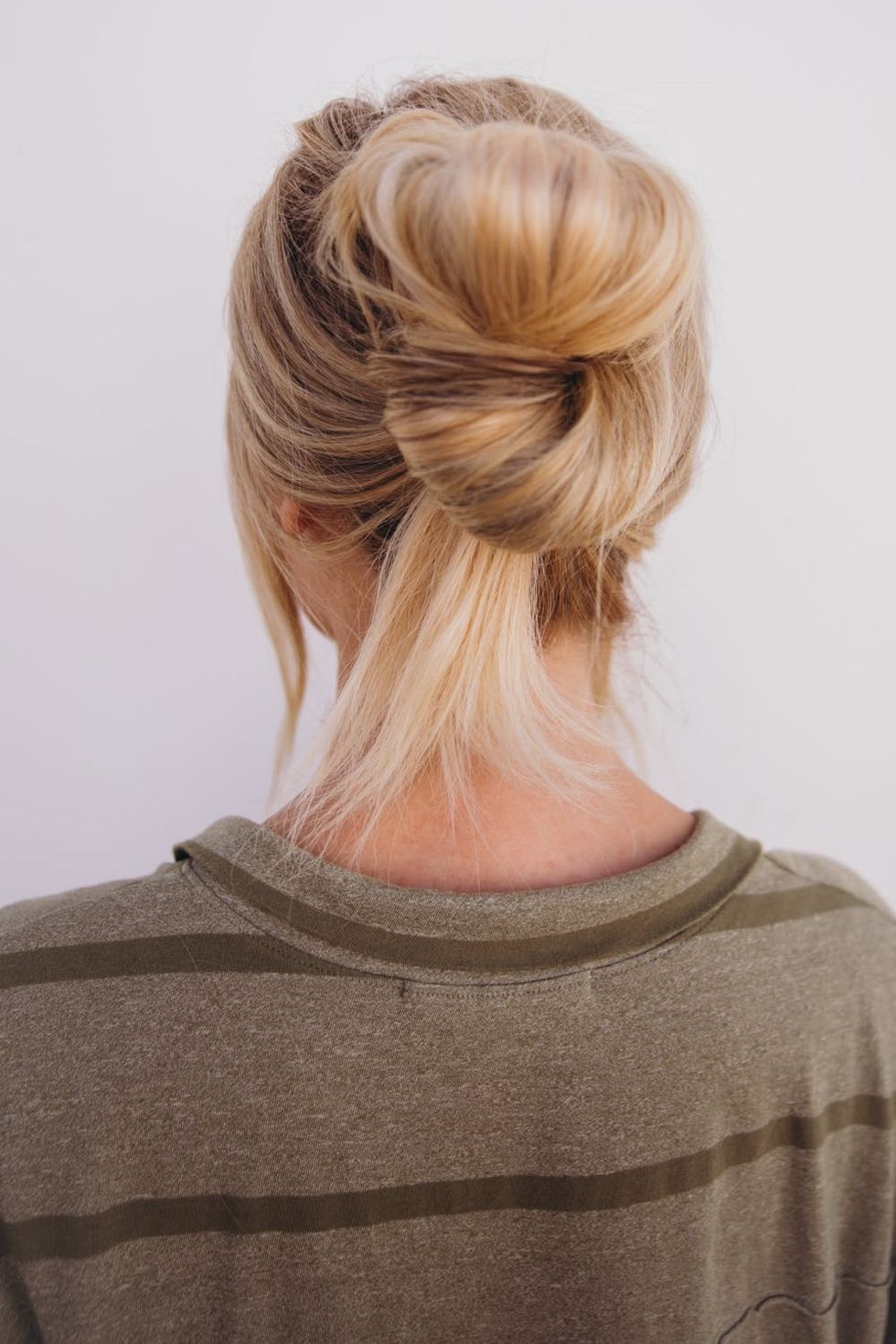 1. If you have thick hair, you can skip this step. If you have fine hair, however, consider the BFB Up ($115). Designed to create full-bodied updos, these clip-in extensions make any ponytail, bun, or twist look bigger and better. If you use them, clip them in line with the tops of your ears under the outermost layer of hair.