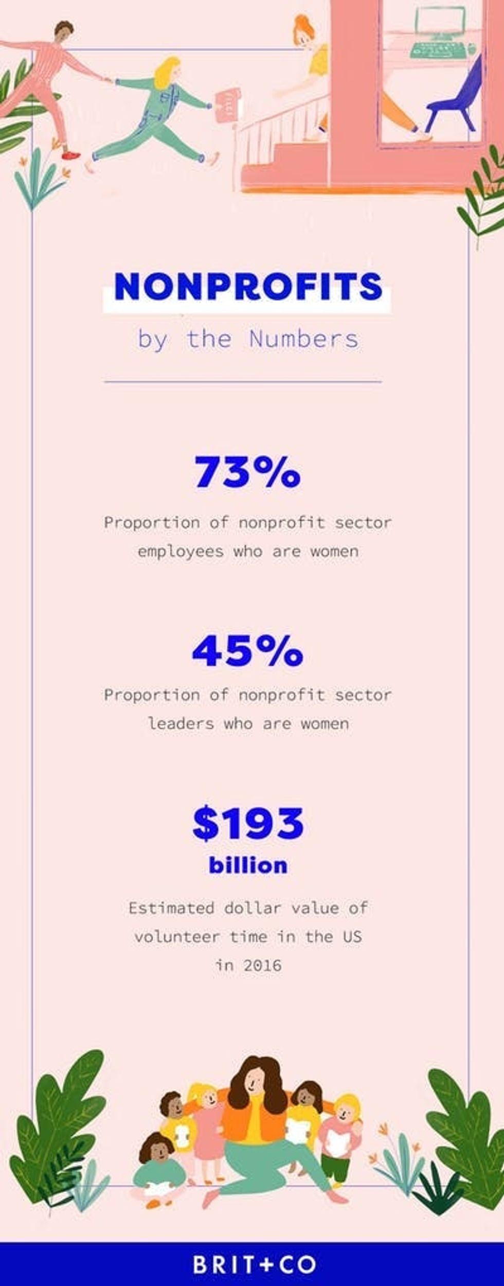 What do Planned Parenthood, the Girl Scouts of the USA, the ASPCA, and the American Red Cross all have in common? Maybe these are organizations that come to mind when you're thinking about causes that you care about, and they're all examples of American nonprofits: organizations devoted to supporting social causes that run the gamut from educational initiatives to scientific research, the environment to public health, and plenty more in between. Unlike for-profit corporations, nonprofits are tax-exempt organizations whose main goal is serving the public interest, versus generating revenue for the sake of amassing wealth. What's more, evidence suggests that women are the key to nonprofits' success in making social change.