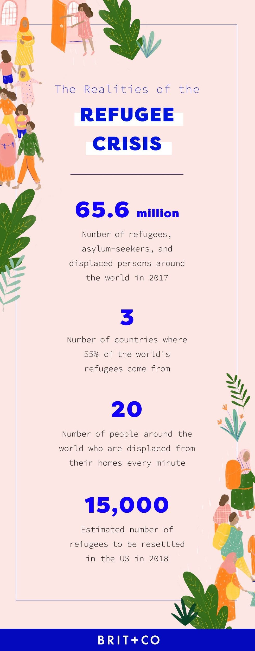 Refugees and immigrants are often talked about interchangeably, but technically, refugees are people who are forced to leave their home country because they face persecution, or need to escape wars or natural disasters. Put another way, refugees are people who have been pushed out of their homes against their will, and who may find themselves trying to start their lives all over in a new home where they don't feel totally welcome. This means that it's up to people and communities to reach out and bridge the humanitarian gap to make displaced individuals and families feel at home.