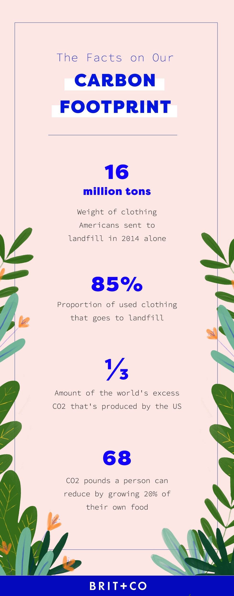 And it's not just obvious activities like driving fuel-burning cars that are contributing to the problem. As we all know: Americans love to shop. And when people move on from that sweater or dress they just had to have a year ago and toss it into the trash, it all adds up. According to PBS, Americans throw away 13 million tons of clothes every year, comprising 9 percent of the country’s total non-recycled waste. And according to the Carbon Trust, clothing consumption around the world creates 330 metric tons of CO2.