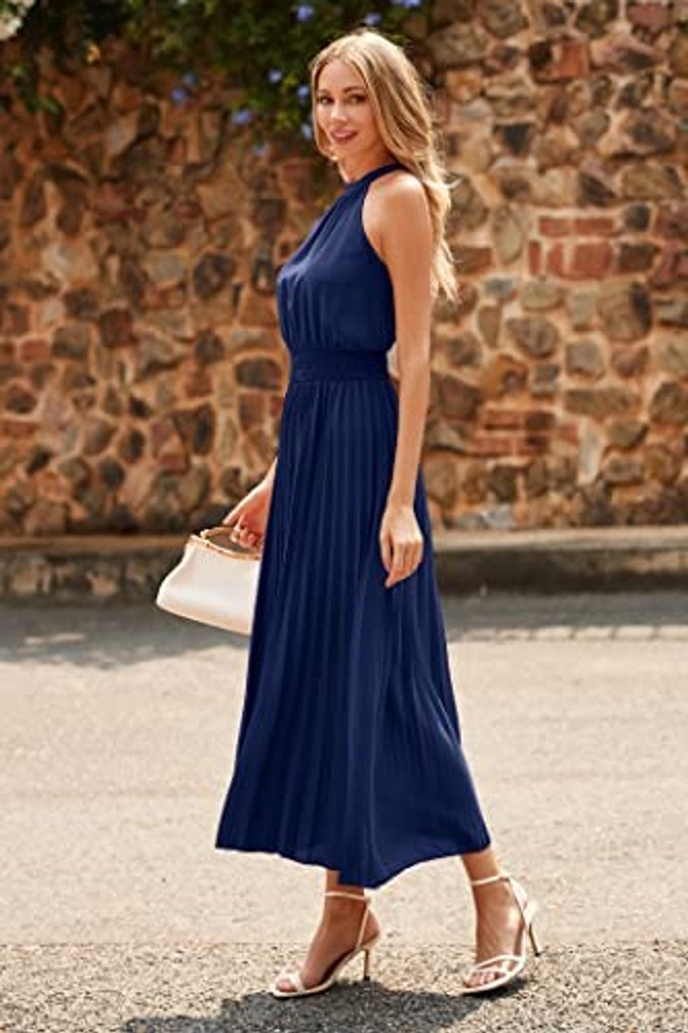 This pleated dress is perfect if you're aiming for a simple yet elevated look, thanks to the simple, textured material. Its halter neck design will look stunning paired with an updo and some chunky earrings. This versatile dress can transition seamlessly from a casual event to a more formal setting, depending on the shoes you choose to wear.