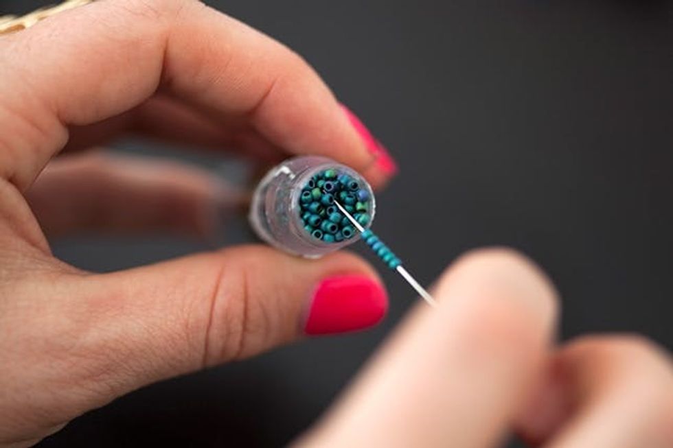 3. Fill your beading needle with enough seed beads to cover the line. You can hold up the needle to measure the line as you go.