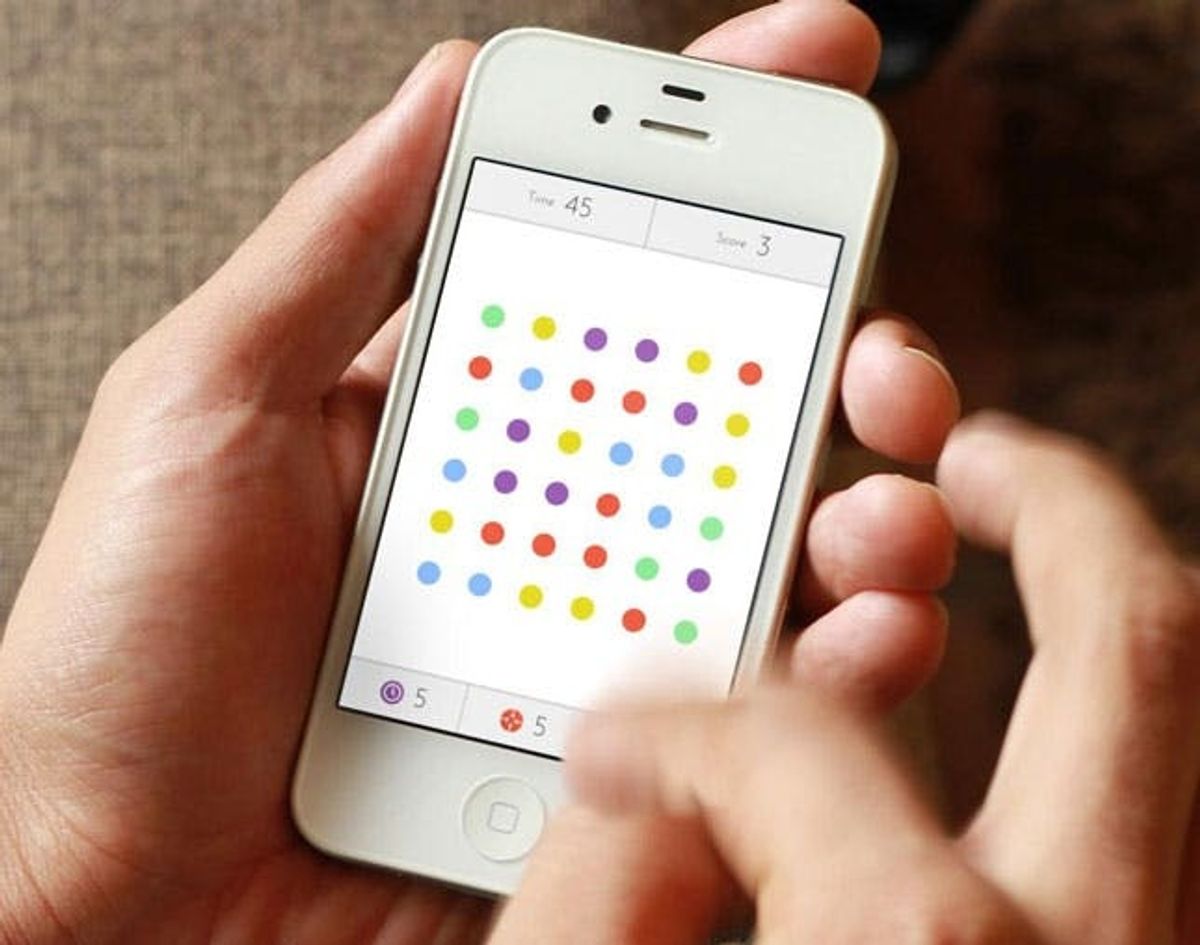 1. Dots (Free): First we’ve got Dots, the game that tons of commuters seem to be going nuts for. It’s a Tetris-style game in that you are looking for groups of the same color and connecting them to get rid of them, but somehow it has a futuristic aesthetic. We love the use of gestural motions on the iPhone, and the colors they chose look awfully familiar ;)