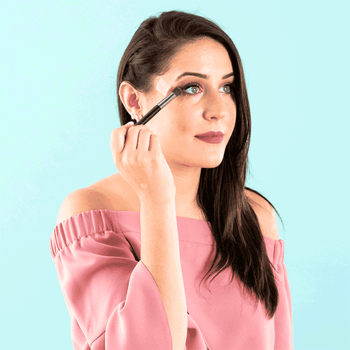 Carefully place a strip of clear tape on the outer corner of each eye, so it meets the outer end of your eyebrow. This creates a crisp cat eye with whatever shadow you choose. Gently peel the tape off when you’re done and you’ll be left with a stunning, sharp masterpiece that looks professionally done.