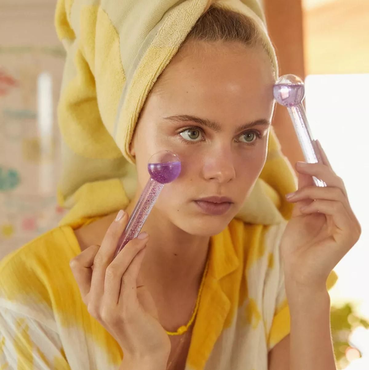 Unless you're taking a vacation somewhere cold, chances are you'll be hot and sweaty more often than not. On top of drinking plenty of water, cool down your face with some tools that help with redness and inflammation. Use an ice roller or globes to help with puffiness, or just go all-in with a gel face mask you can keep in the fridge.