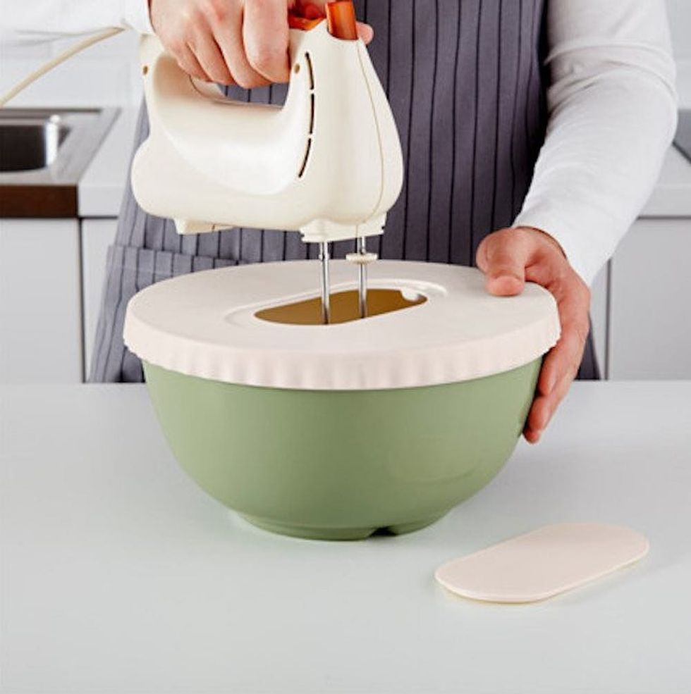 Sure, any old mixing bowl will do, but why not invest in a few to start your own collection? This mixing bowl from IKEA has a handy lid for chilling your cookie dough and a hole for mess-free mixing.