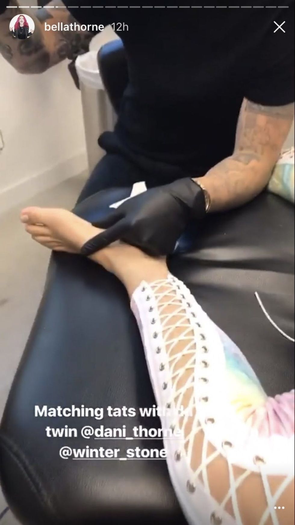 We got a glimpse at their new body art thanks to Bella’s Instagram story, where she documented the process for fans with a shot in the tattoo chair of LA artist Daniel Winter. “Matching tats with @dani_thorne,” she wrote ahead of the procedure.