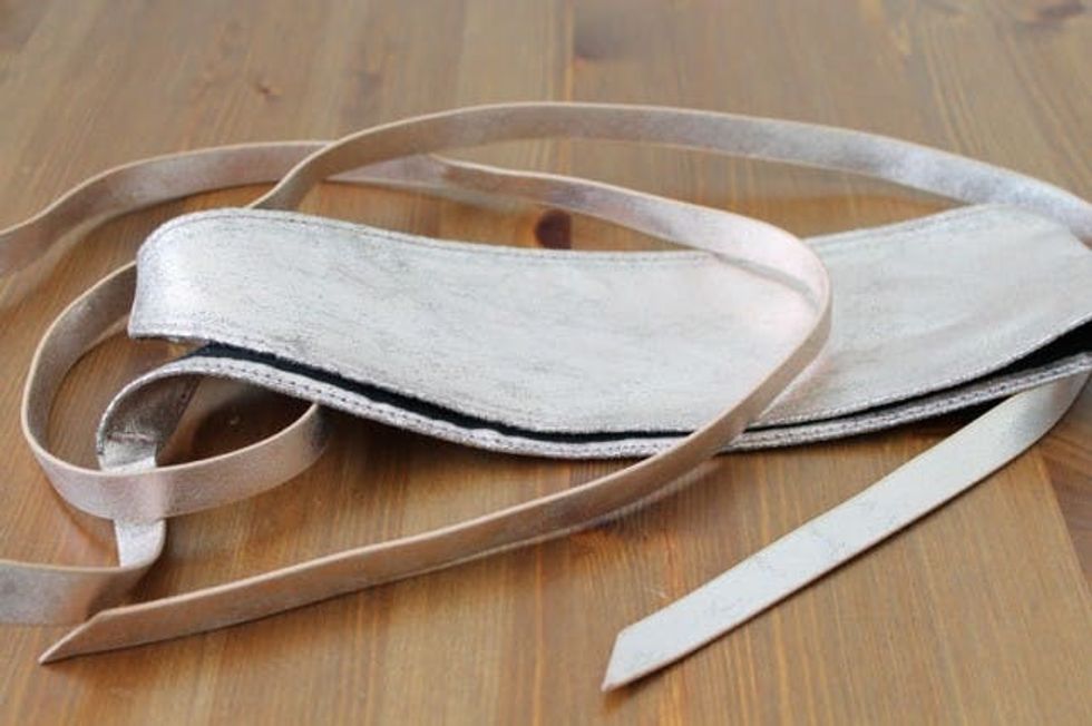 As you can see, the belt we used was a wrap belt that had both a super thick part and skinny ends to tie around your waist. You could also make all of these accessories with a piece of leather, but we love repurposing those old accessories you never wear anymore.