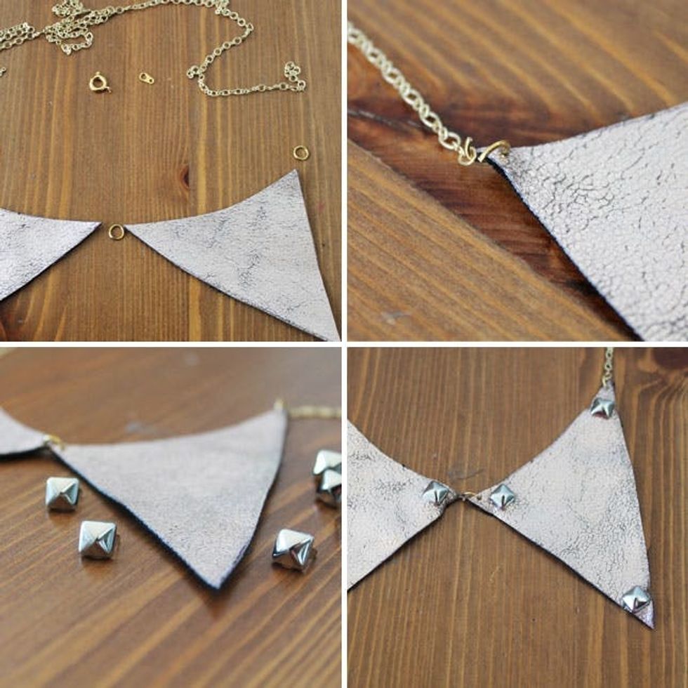 Connect your collar pieces in the middle with one jump ring, then use two more jump rings to connect the chain on each end. If you’re feeling edgy, add studs!