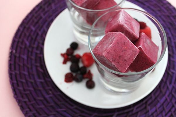 Ready for day 3 of our healthy smoothie extravaganza? We’ve rounded up 12 smoothie recipes, created our own green smoothie, and now, we’re making a delicious cold-busting, antioxidant-filled berry smoothie. This smoothie has a secret cold fighting ingredient for those whose immune systems are weakened from over-celebrating NYE… Emergen-C! It’s packed with health-promoting antioxidants, protein from the Greek yogurt, and anti-cold medicine. Start your mornings off with this smoothie and you’re bound to beat whatever’s ailing you, including boring breakfast syndrome. As you can see, we took a cue from Inspired Edibles in our smoothie roundup and froze our smoothie in cube form making it easy to grab-and-go in the morning.