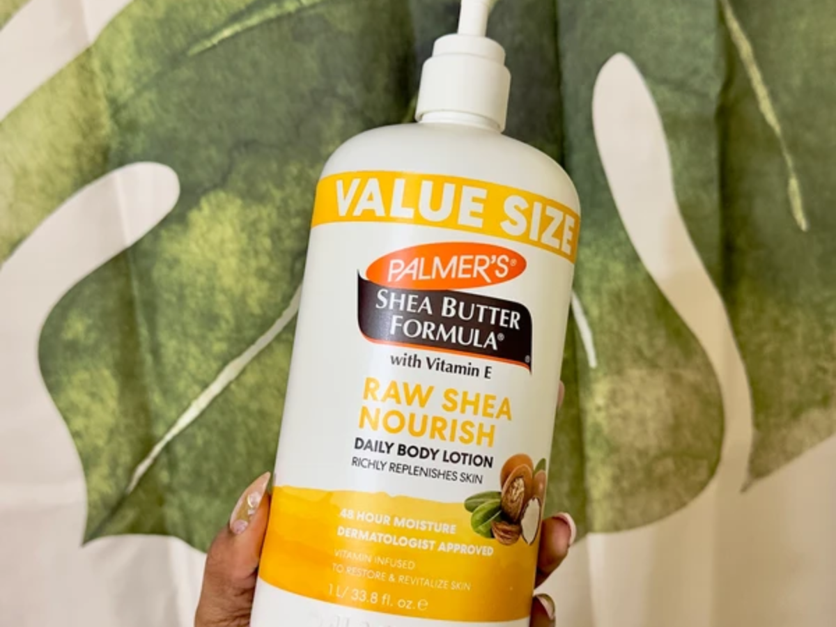 I need something that's going to keep my dry skin moisturized without triggering eczema flareups, and one of the top moisturizers I've found gets the job done is Palmer's Shea Formula Body Lotion. I personally opt to get the value size of this because it lasts a little over a month for me. Why? Well, a little goes a long way because this dermatologist-approved formula is thick. Once I rub it into my skin, it provides the silkiest shine I've ever seen. Besides shea butter, it has Marula, oatmeal, grapeseed oil, and vitamin E in it to provide the radiance I love so much.