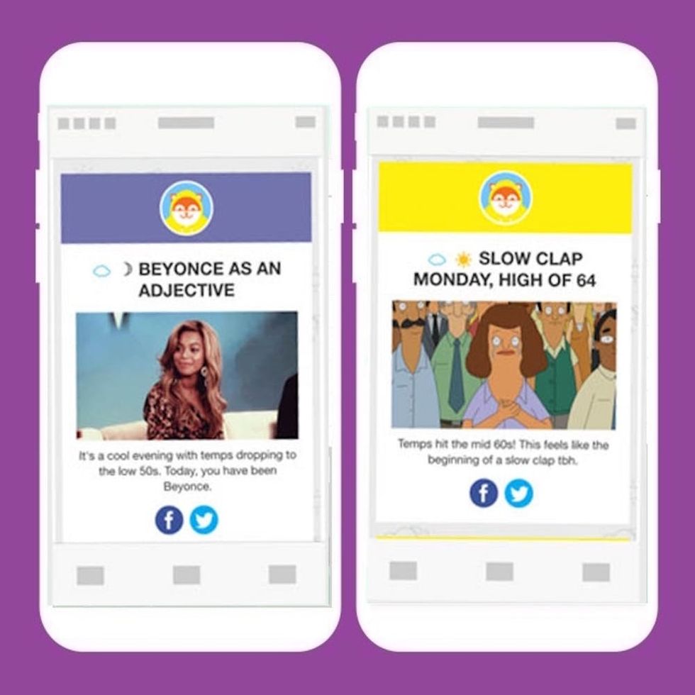 1. Poncho: Poncho is a weather app that will help you start your day (perhaps game day?) off right. It gives you the forecast with a custom message guaranteed to put a smile on your face. Plus it comes with GIFs, a cute alarm clock and lots of jokes.