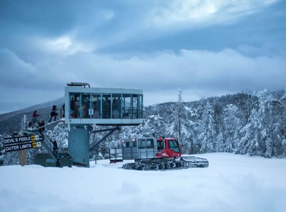 11. Killington, VT: This New England hamlet tops every list of party towns for its raucous cluster of bars along Killington Road. For a totally different on-the-snow experience, catch an after-hours snowcat ride to the Motor Room Bar, a cocktail den housed in a retired lift station within Killington Resort. (Photo via Killington Resort)