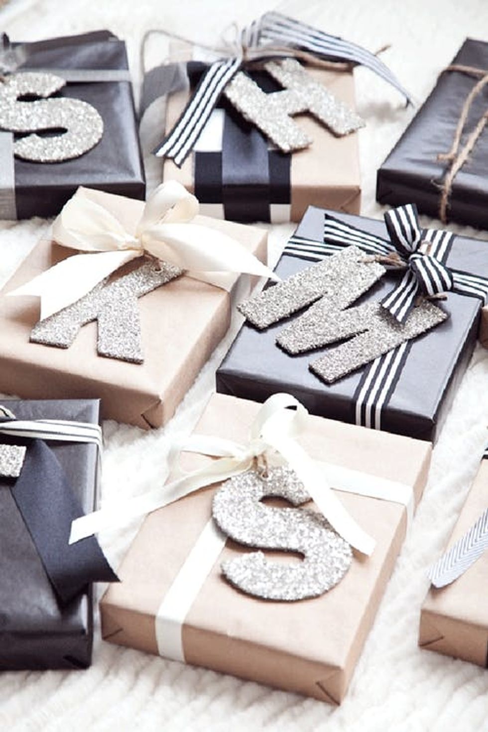 12. Glittery Gift Tags: The glitter queen strikes again! You’ll leave a trail of crafting magic wherever you go when your gifts are bedazzled with personalized gift tags. Monograms are fun, but you can also dip craft paper tags in glitter for a less intense cutting experience. (via Boxwood Clippings)