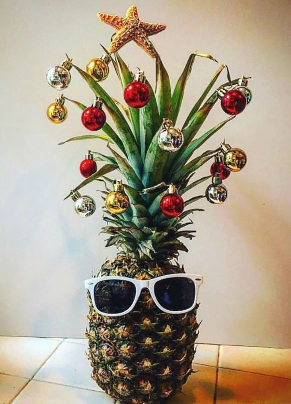 1. Pineapple Christmas Tree Decor: This fruit is still running laps around the decor and DIY world, and Christmas has not been spared. There are pineapple ornaments, pineapple-shaped trees, and even pineapples masquerading as trees. (via Brit + Co)