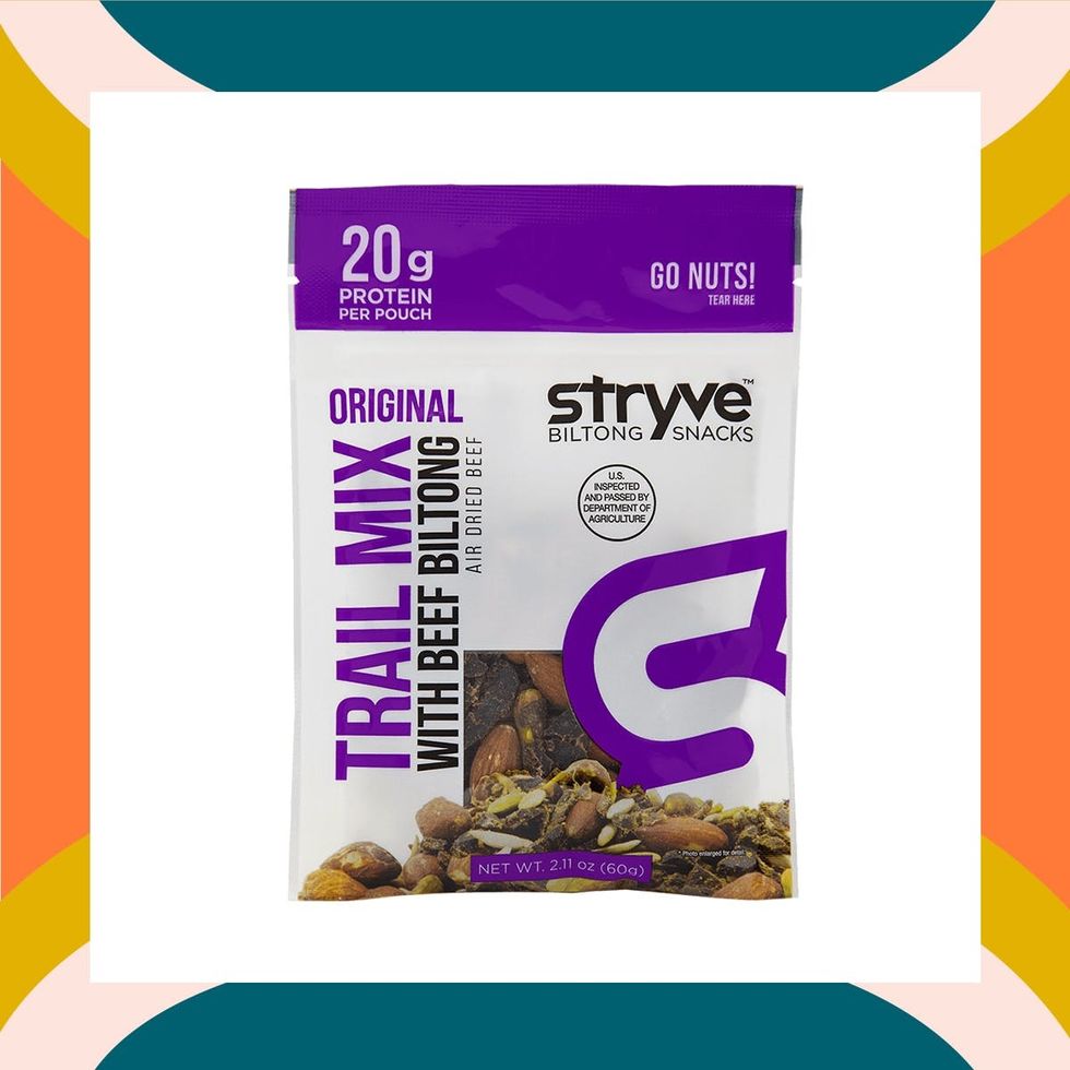 Stryve Original Trail Mix With Beef Biltong ($5): Beef biltong is a form of air-dried meat that maximizes flavor. It results in thin, crunchy, cracker-like jerky. Though the combo sounds strange, this mix of nuts, seeds, and biltong provides a satisfyingly savory way to snack.