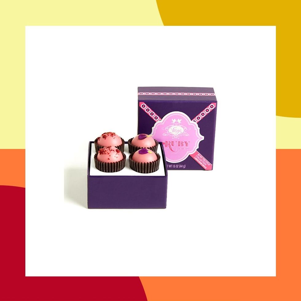 Vosges Ruby Truffle Collection ($15): Ruby chocolate is more than meets the eye. This *naturally* pink, very rare type of chocolate (introduced in 2017) has a sweet yet sour taste that complements tropical fruit. Vosges handcrafted it into two totally delicious truffles: Ruby Cerise (vanilla + cherry gelée + hibiscus + ruby + freeze-dried cherry + pink peppercorn) and Sour Mango Ruby (passion fruit + mango + salted caramel + ruby + edible purple flower petal).