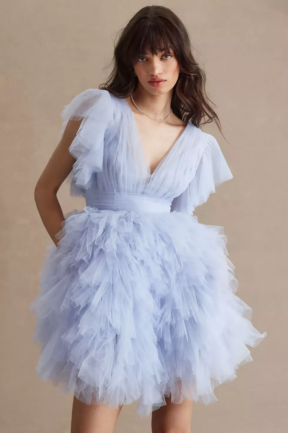 Mac Duggal Ruffled A-Line Flutter-Sleeve Mini Dress ($598)