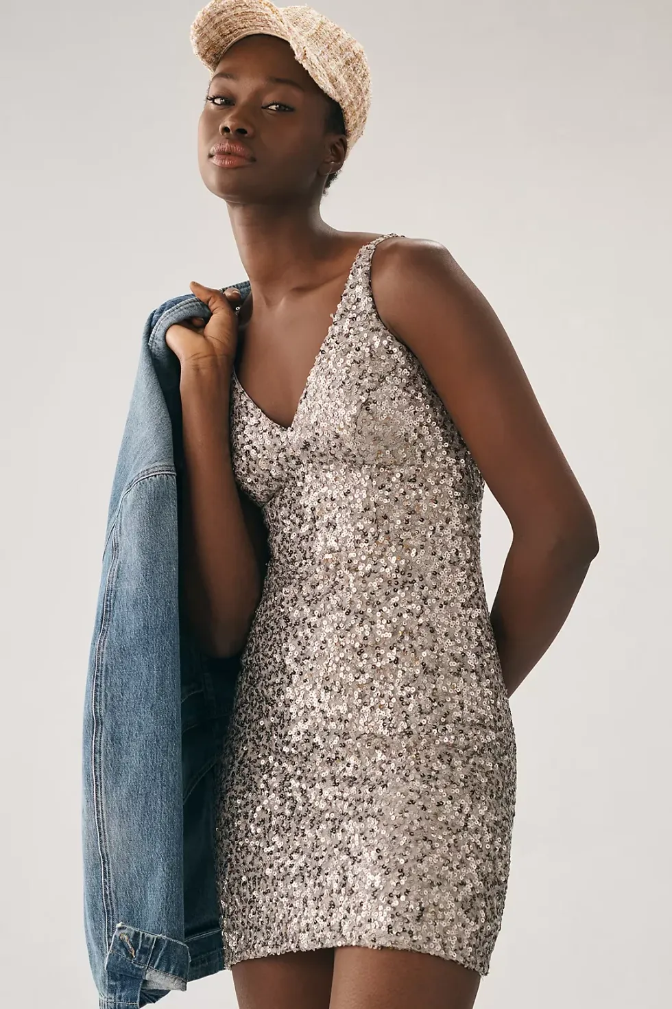 Ever want to give a little sparkle, but still maintain some mystery? We know the feeling, which is why we love this Midnights-worthy dress.