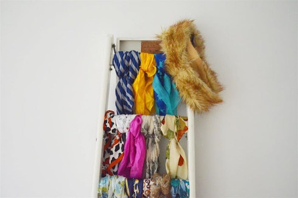 10. Ladder your layers. You’ve probably seen the blanket ladder tutorials everywhere by now. But here’s a much more relevant approach for the impressive scarf stash you’ve accumulated through the seasons. (via Almost Stylish)