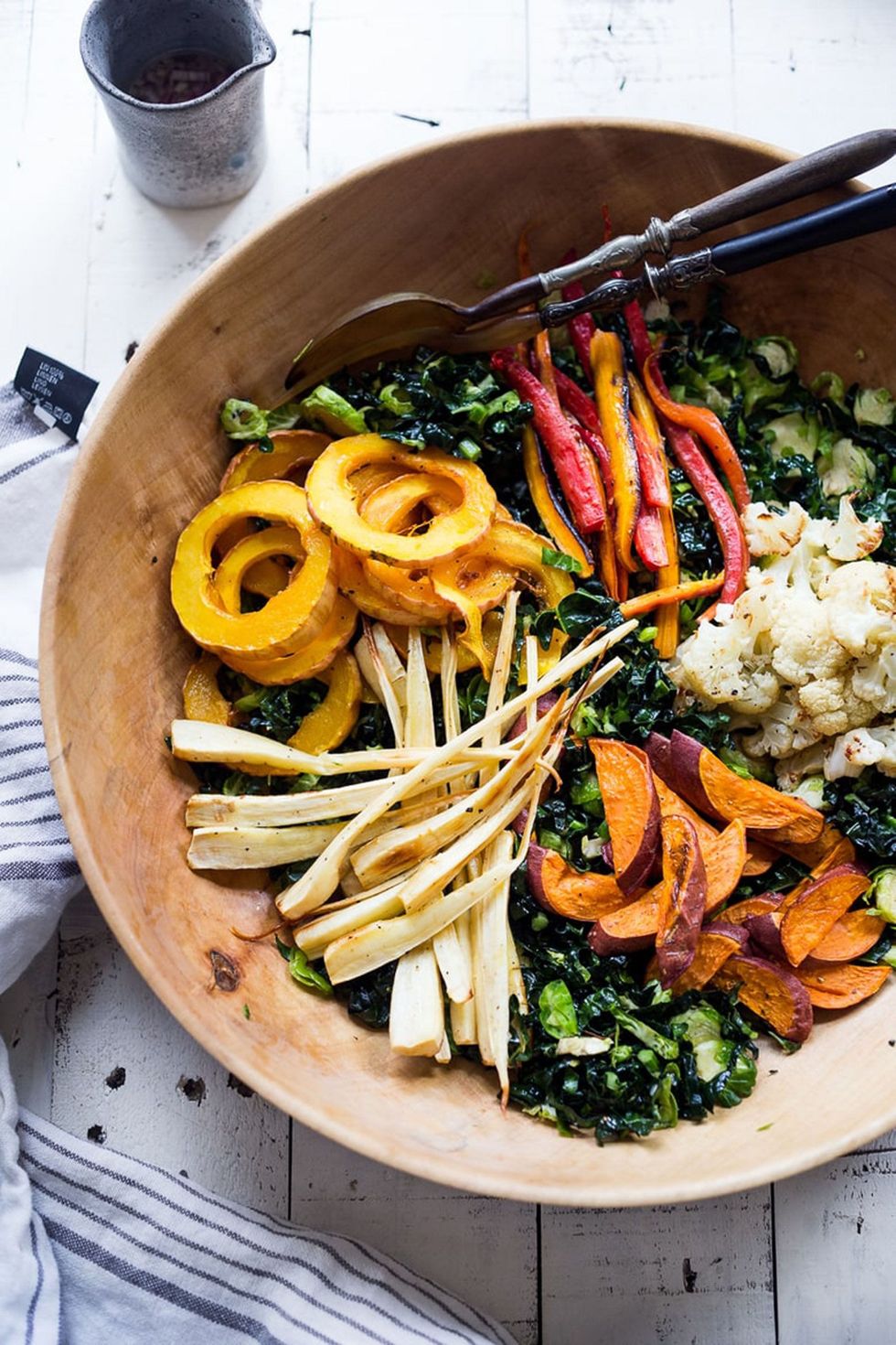 Roasted Fall Vegetable Salad With Curry Dressing: Roasted veggies have never looked — or tasted — so satisfying. (via Feasting At Home)