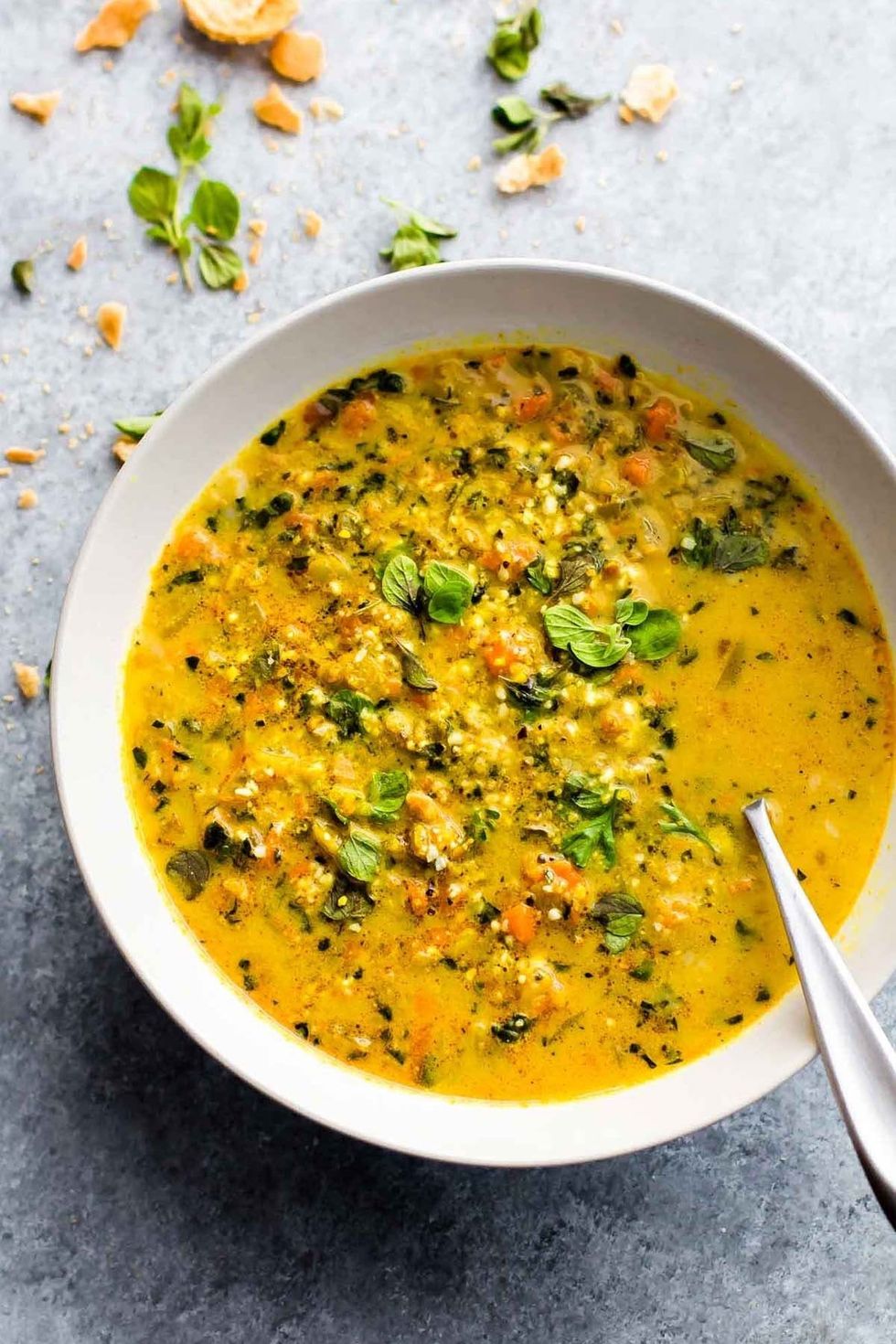 Curried Cauliflower Rice Kale Soup: Eastern flavors meets good-for-you superfoods. One bowl of this hearty, yet healthy soup and you'll be ready to tackle the day. (via Cotter Crunch)