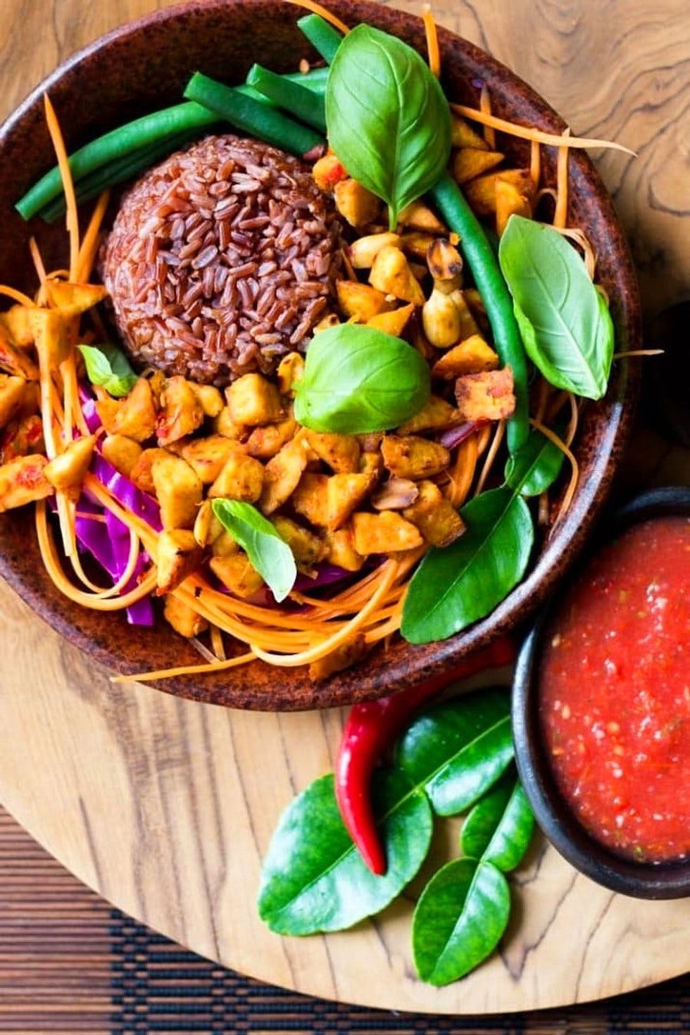 Bali Bowl With Tempeh, Peanuts, and Tomato Sambal: Mix up your go-to bowl lunch with this soul-satisfying option filled with exotic flavors. (via Quite Good Food)