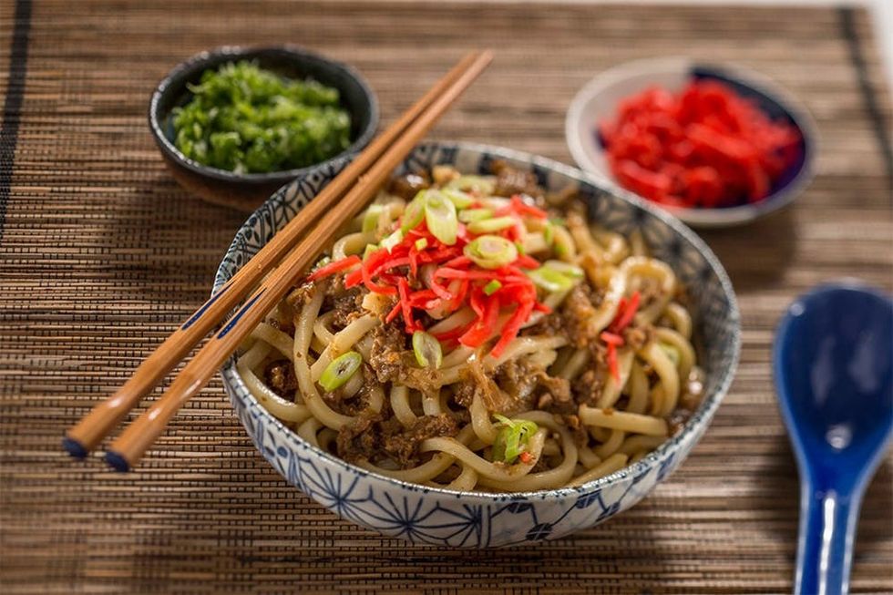 - Beef Teriyaki Udon: thin-sliced beef, onions, and noodles