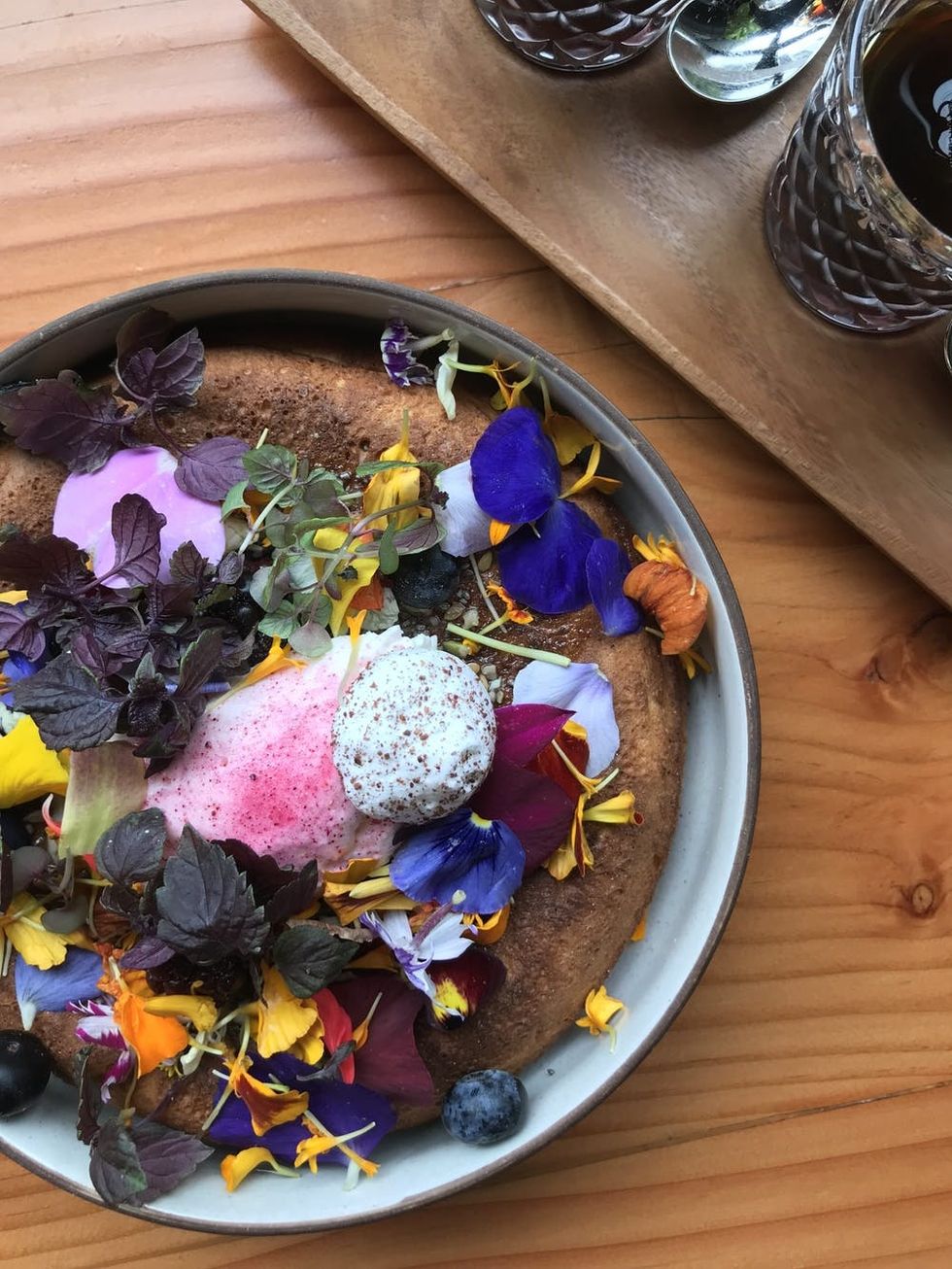 Whenever I’m on the road exploring a new city, I love turning to Instagram to help guide my way, so when I saw these incredibly beautiful pancakes at a coffee shop called Proud Mary in Portland’s artsy district of Alberta, I knew I had to check them out. Visually stunning for sure, but the best surprise was the taste and texture. I broke into the crisp exterior and greeted a tender and light interior that exceeded all expectations for what a pancake could be. The edible flowers might have drawn me in, but one bite and I knew I absolutely had to track down this recipe.